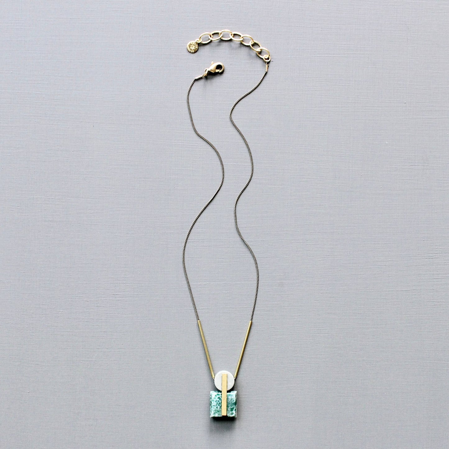 17” necklace with brass-ox chain, gray jasper, and vintage glass. 2 inch extender.